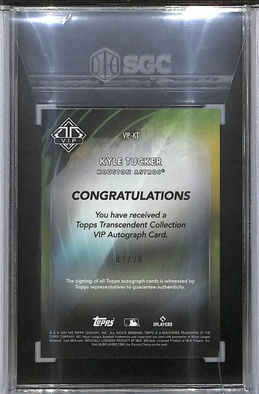 2022 Topps Transcendent VIP #VIP-KT Kyle Tucker SGC 10 Gem Auto 3/20 Houston Astros