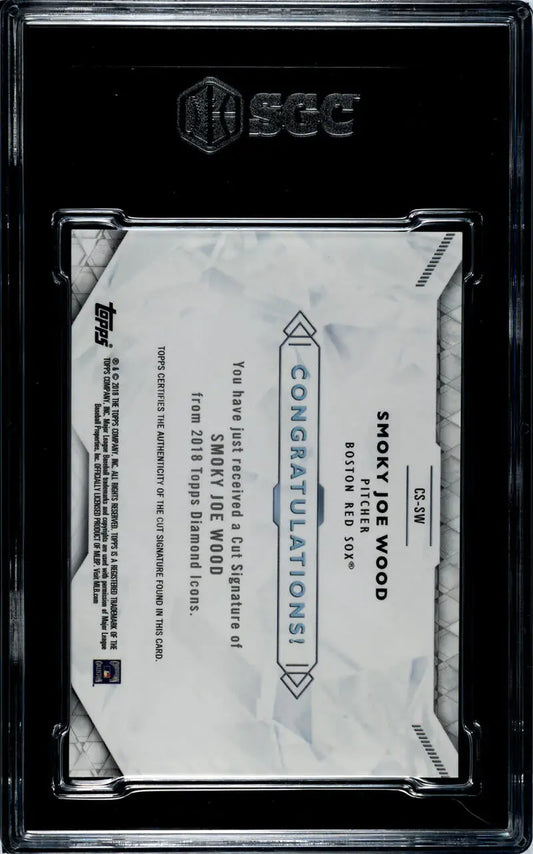 2018 Diamond Icons #CS-SW Smoky Joe Wood SGC 9.5 MINT+ Auto 3/4 Boston Red Sox Baseball Card