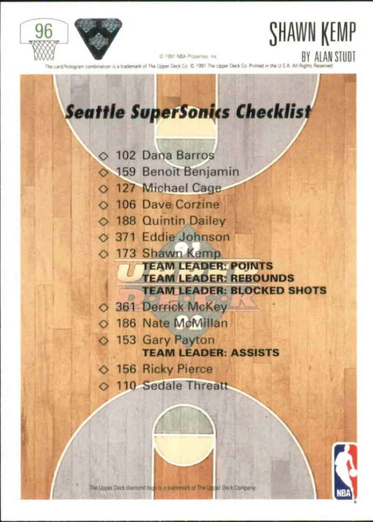 1991-92 Upper Deck #96 Shawn Kemp TC NM-MT Seattle SuperSonics Basketball Card
