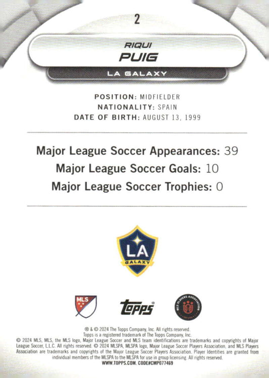2024 Topps MLS Superstars #2 Riqui Puig NM-MT LA Galaxy Soccer Card