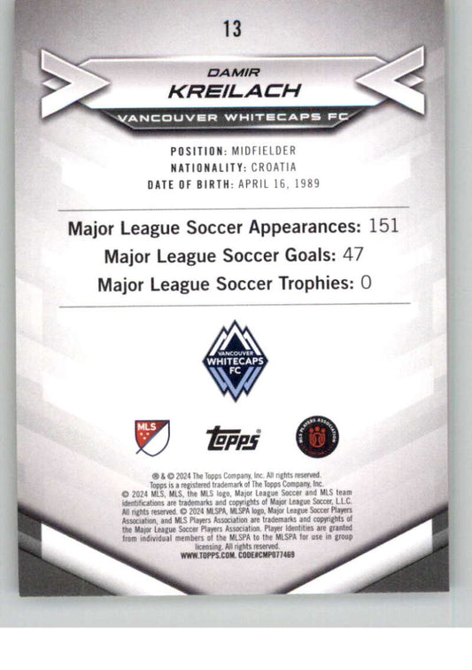 2024 Topps MLS Superstars Common Yellow #13 Damir Kreilach NM-MT Vancouver Whitecaps FC Soccer Card