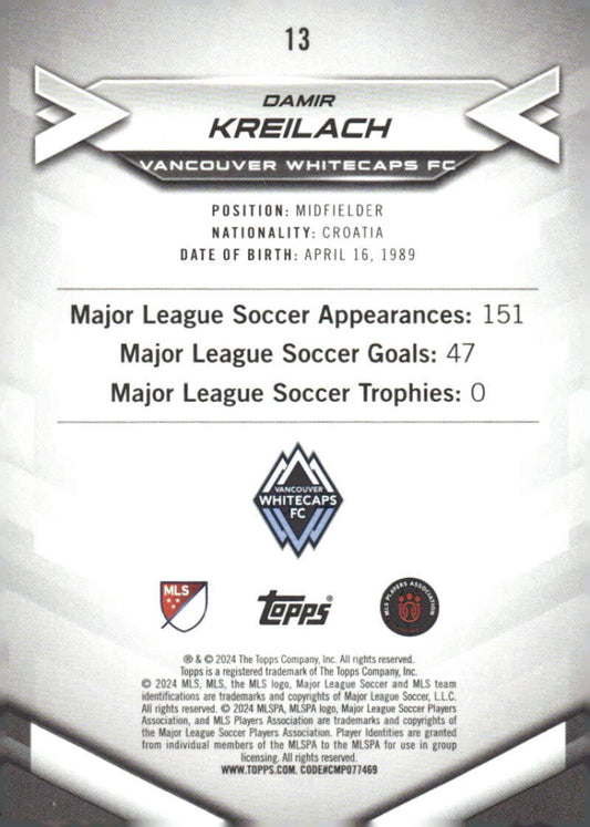 2024 Topps MLS Superstars #13 Damir Kreilach NM-MT Vancouver Whitecaps FC Soccer Card