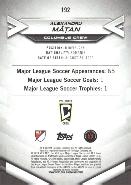 2024 Topps MLS Superstars #192 Alexandru Matan NM-MT RC Rookie Columbus Crew Soccer Card