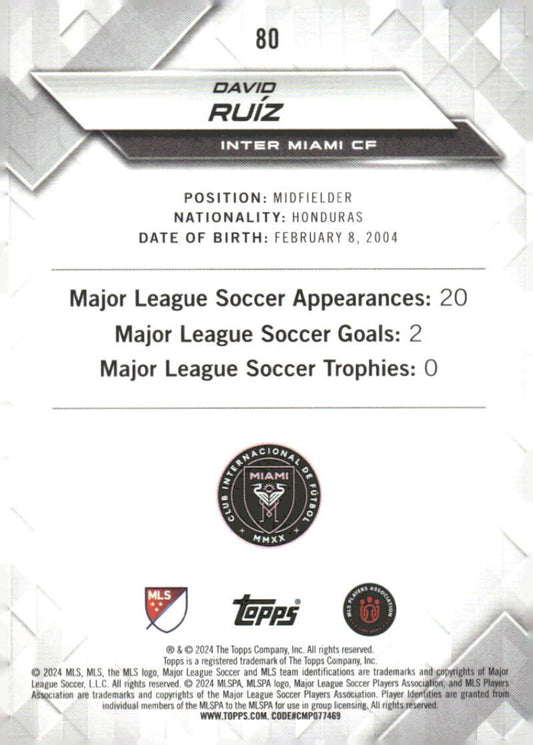 2024 Topps MLS Superstars #80 David Ruiz NM-MT RC Rookie Inter Miami CF Soccer Card