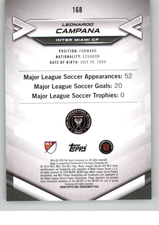 2024 Topps MLS Superstars Common Yellow #168 Leonardo Campana NM-MT RC Rookie Inter Miami CF Soccer Card