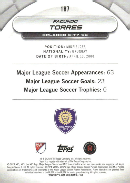 2024 Topps MLS Superstars #187 Facundo Torres NM-MT Orlando City SC Soccer Card