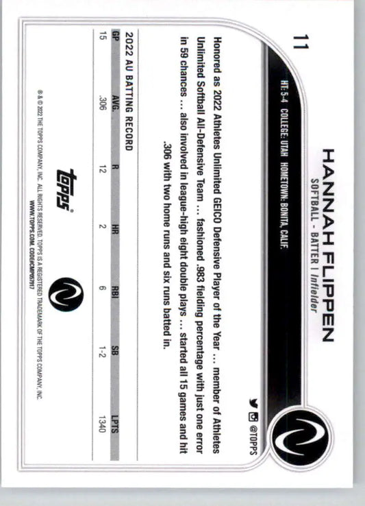 2023 Topps Athletes Unlimited All Sports 11 Hannah Flippen Softball
