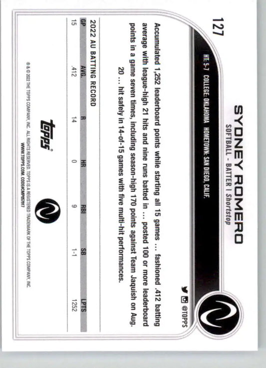 2023 Topps Athletes Unlimited All Sports 127 Sydney Romero Softball