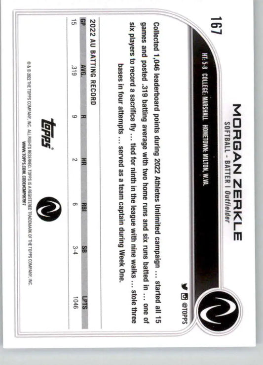 2023 Topps Athletes Unlimited All Sports 167 Morgan Zerkle Softball