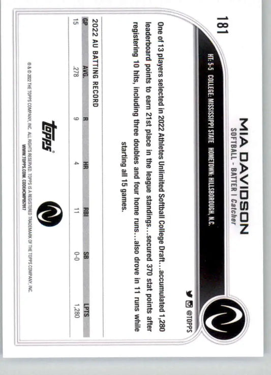 2023 Topps Athletes Unlimited All Sports 181 Mia Davidson Softball
