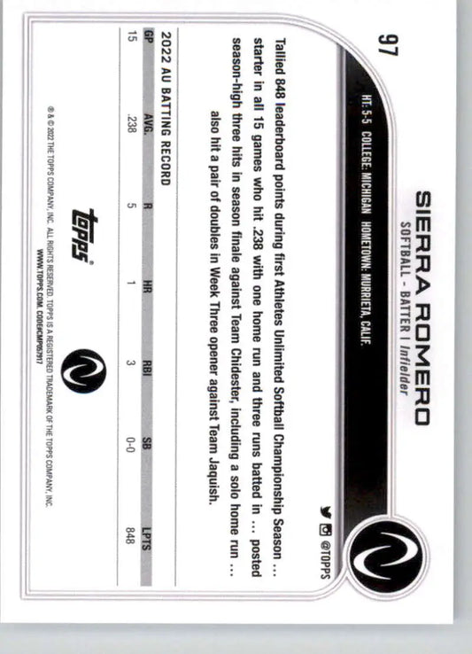 2023 Topps Athletes Unlimited All Sports 97 Sierra Romero Softball