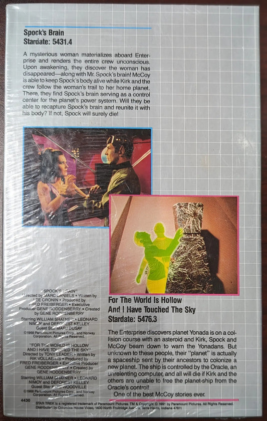 1991 Columbia House Star Trek VHS Spock's Brain / For the World is Hollow ...