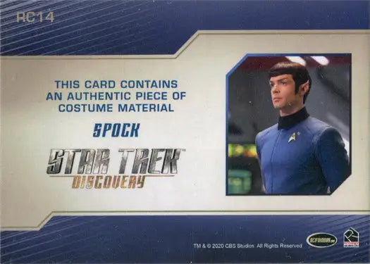 Star Trek Discovery Season 2 Relic Costume Card RC14 Ethan Peck as Spock