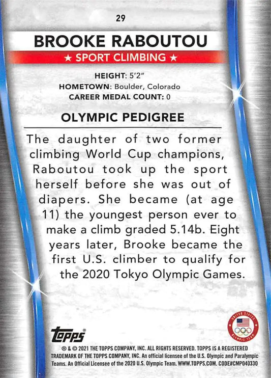 2021 Topps US Olympics and Paralympics Team Hopefuls NM-MT #29 Brooke Raboutou Sport Climbing Card