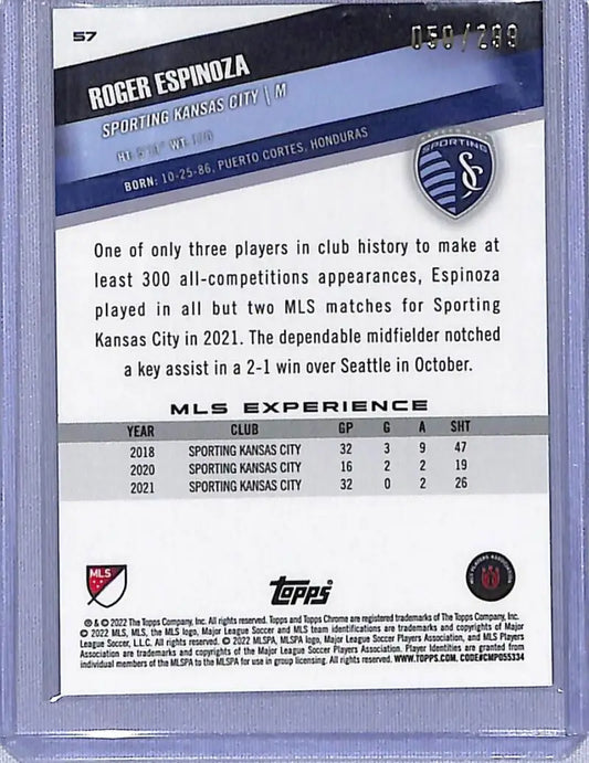 2022 Topps Chrome Cyan #57 Roger Espinoza NM-MT 050/299 Sporting Kansas City