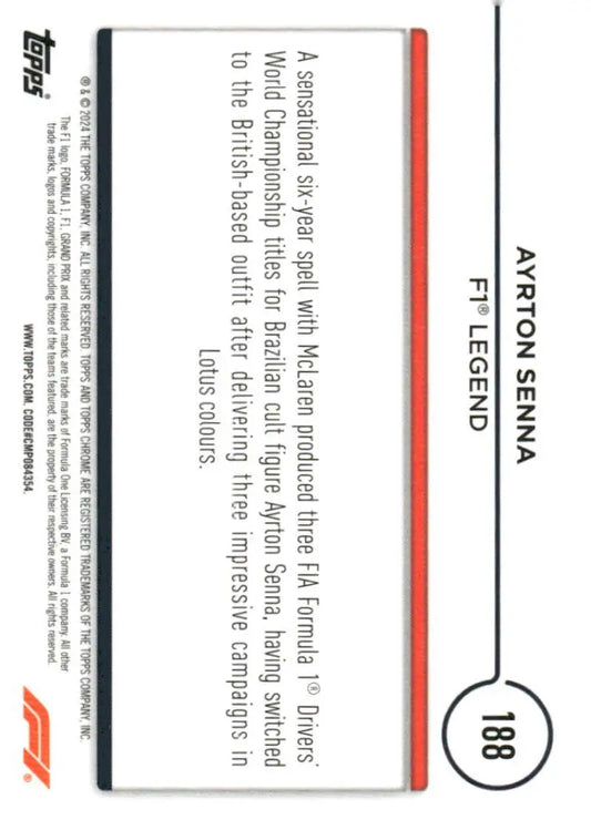 2024 Topps Chrome Formula 1 #188 Ayrton Senna NM-MT Legend Racing Card