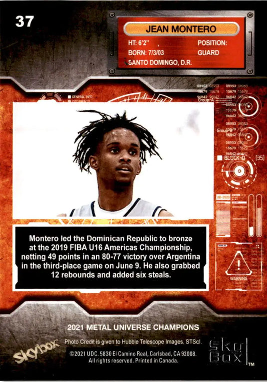 2021 Skybox Metal Universe Champions NM-MT #37 Jean Montero RC Basketball Card