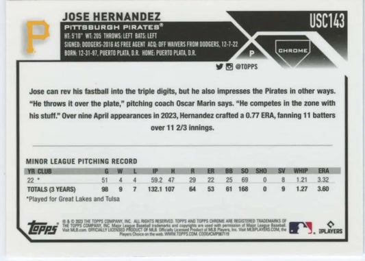 2023 Topps Chrome Update #USC143 Jose Hernandez NM-MT RC Rookie Pittsburgh Pirates Baseball Card