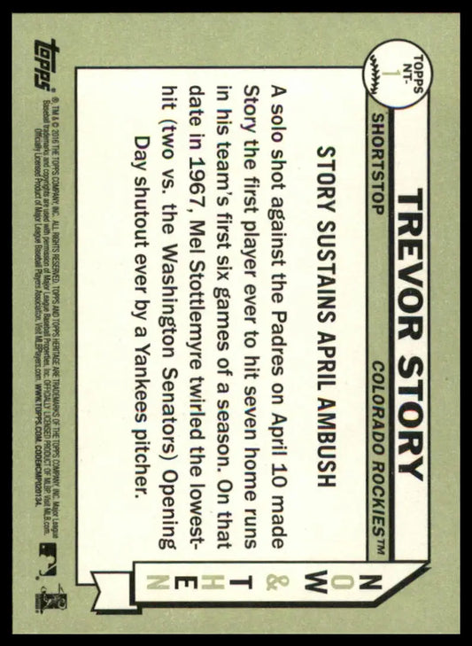 Trevor Story 2016 Topps Heritage Now & Then #NT-1 Colorado Rockies