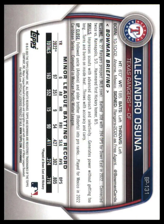 Alejandro Osuna 2023 Bowman Prospects #BP-131 Texas Rangers