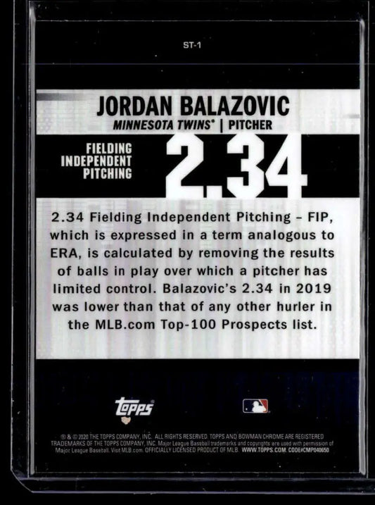 2020 Bowman Chrome #ST-1 Jordan Balazovic Stat Tracker NM-MT