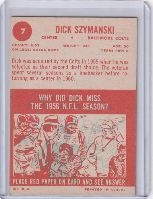 1963 Topps Football #7 Dick Szymanski RC - Baltimore Colts