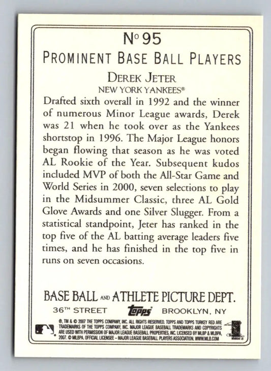 2007 Topps Turkey Red #95 Derek Jeter New York Yankees