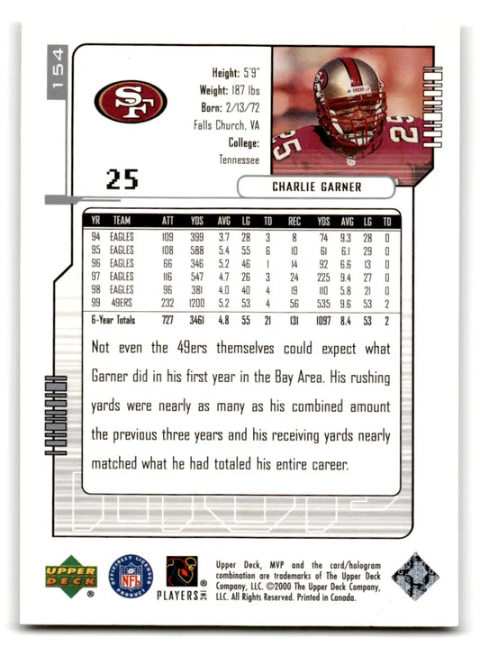 2000 Upper Deck MVP - Silver Script #154 Charlie Garner 49ers