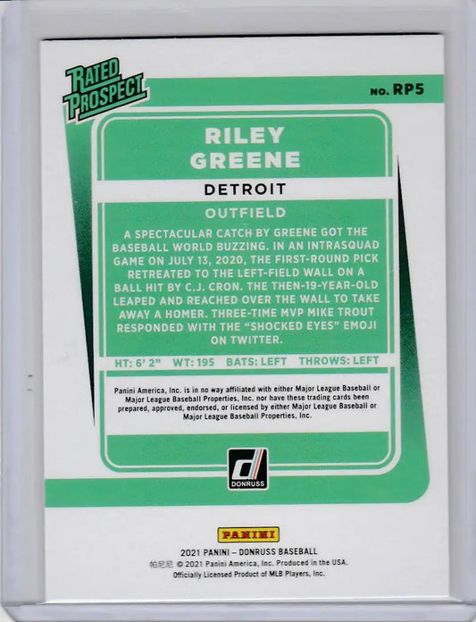2021 Panini Donruss Rated Prospect Diamond #RP5 Riley Greene Detroit Tigers