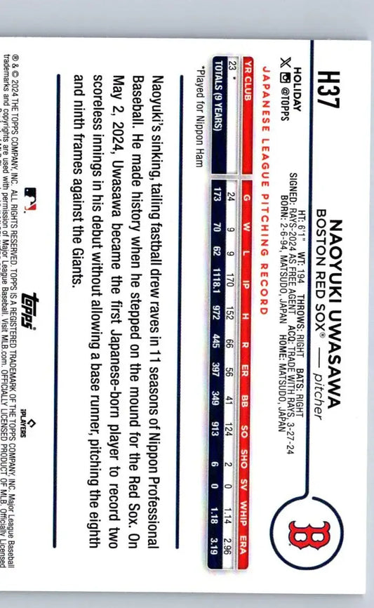 2024 Topps Holiday #H37 Naoyuki Uwasawa