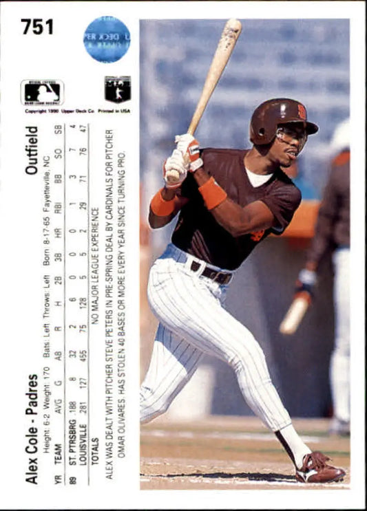 1990 Upper Deck #751 Alex Cole NM-MT RC Rookie San Diego Padres Baseball Card