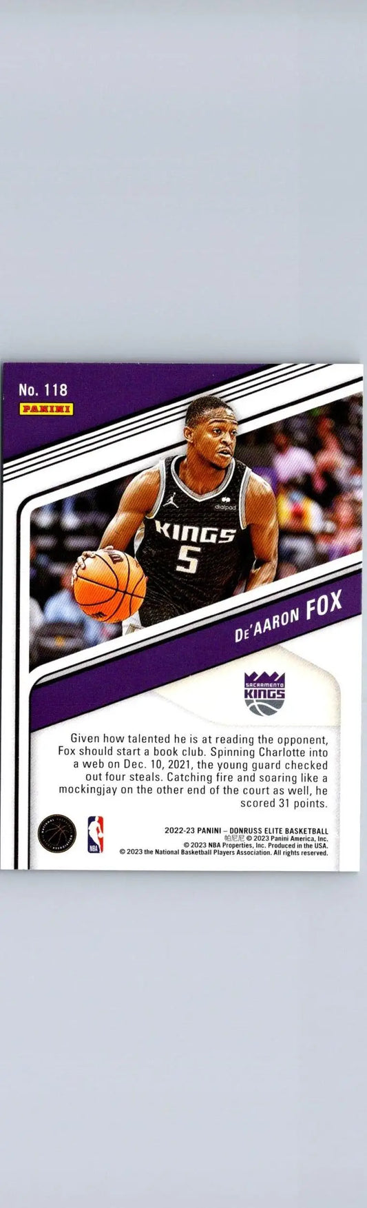 2022-23 Donruss Elite #118 De'Aaron Fox