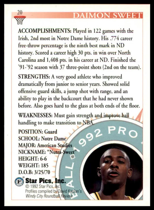 Daimon Sweet 1992 Star Pics #20 Notre Dame Fighting Irish