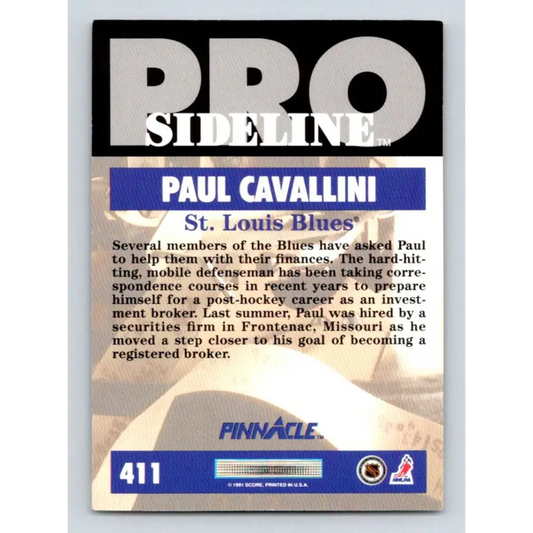 1991-92 Pinnacle #411 Paul Cavallini SL NM-MT St. Louis Blues Hockey Card
