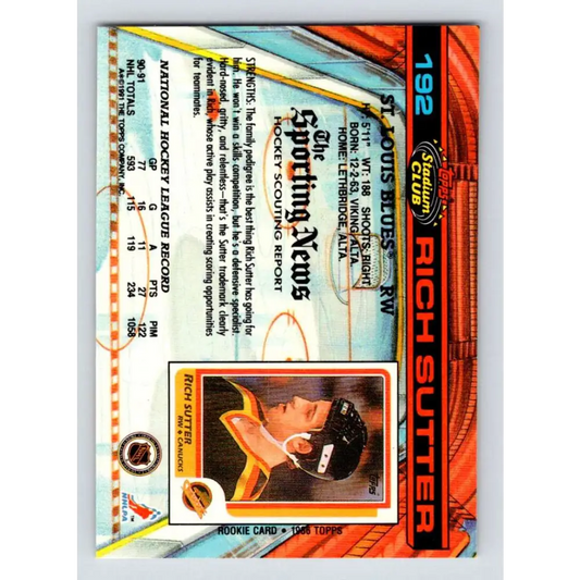 1991-92 Topps Stadium Club #192 Rich Sutter NM-MT St. Louis Blues Hockey Card