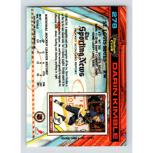 1991-92 Topps Stadium Club #278 Darin Kimble NM-MT St. Louis Blues Hockey Card