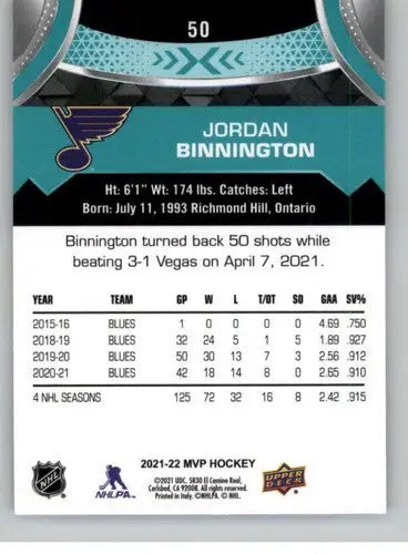 2021-22 Upper Deck MVP #50 Jordan Binnington NM-MT Blues ID:39351