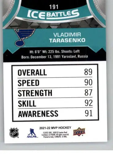 2021-22 Upper Deck MVP Ice Battles #IB-191 Vladimir Tarasenko NM-MT Blues