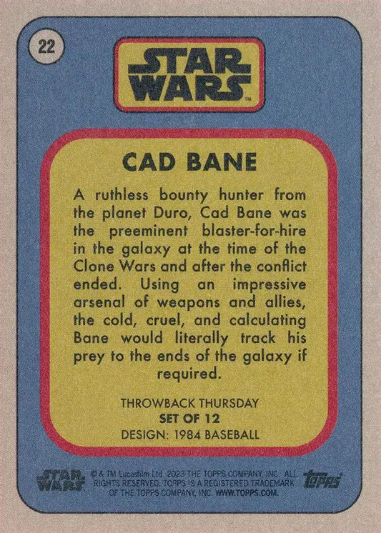 Star Wars Throwback Thursday 2023 Card #22 Cad Bane 1984 Baseball