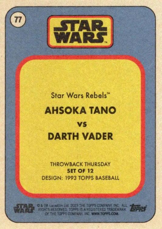 Star Wars Throwback Thursday 2023 Card #77 Ahsoka Tano vs Darth Vader