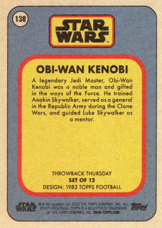 Star Wars Throwback Thursday 2023 Card #138 Obi-Wan Kenobi 1983 Topps Football