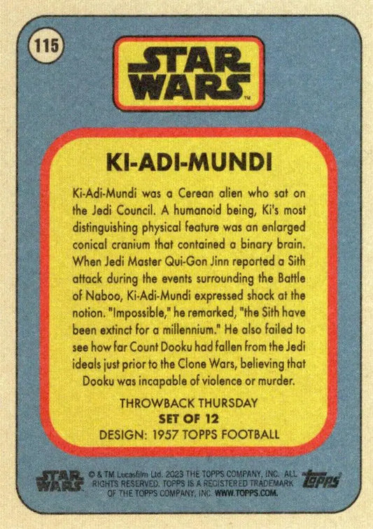 Star Wars Throwback Thursday 2023 Card #115 Ki-Adi-Mundi 1957 Topps Football