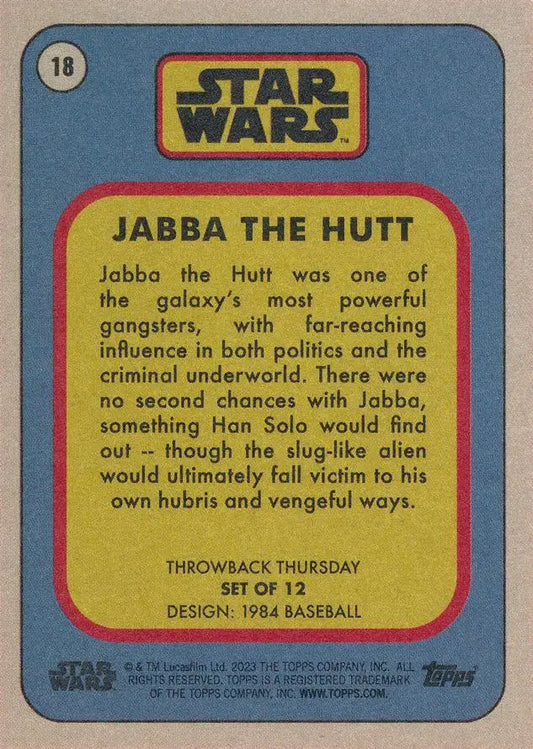 Star Wars Throwback Thursday 2023 Card #18 Jabba the Hutt 1984 Baseball