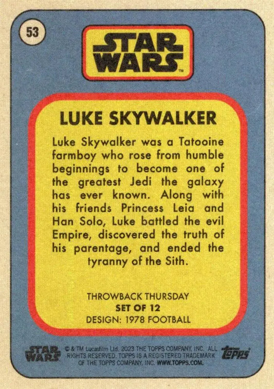 Star Wars Throwback Thursday 2023 Card #53 Luke Skywalker 1978 Football