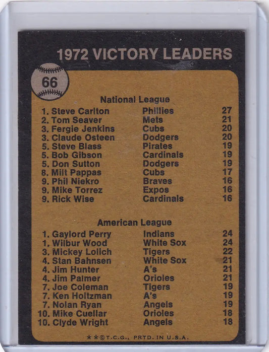 1973 Topps Baseball #66 1972 Victory Leaders - Steve Carlton/Gaylord Perry/Wood