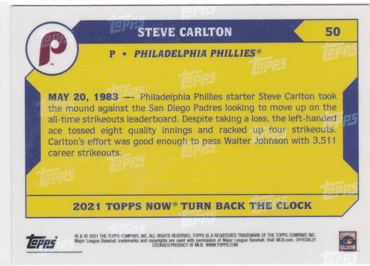 2021 TURN BACK THE CLOCK #50 STEVE CARLTON- PHILADELPHIA PHILLIES