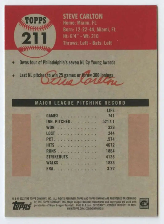 2022 Topps Chrome Platinum Anniversary #211 Steve Carlton NM-MT Philadelphia Phillies Baseball Card