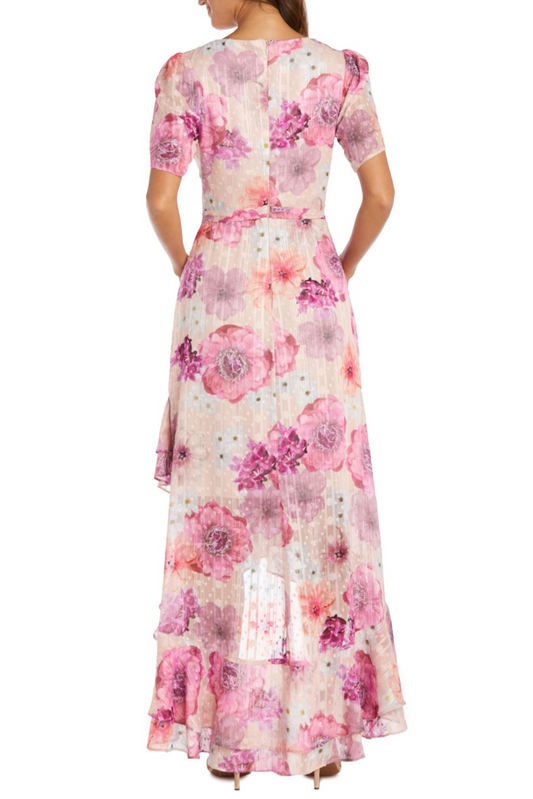 Last One! Size 8 - Nightway Chiffon Floral Metallic Flutter Maxi Day Dress