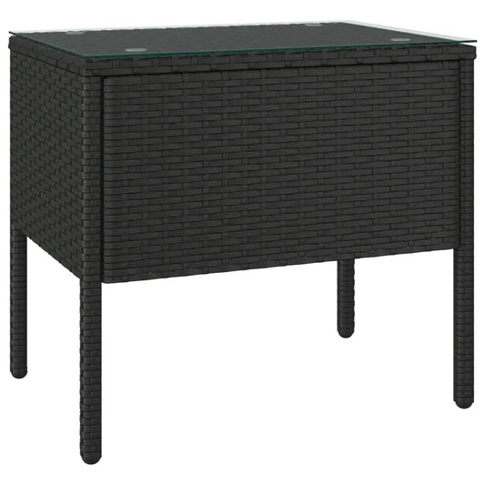 vidaXL Side Table Storage Coffee Console Table Poly Rattan and Tempered Glass