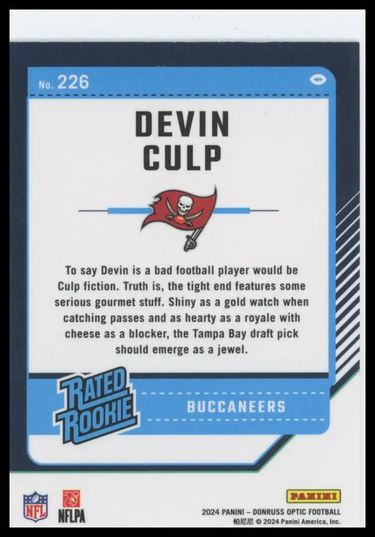 Devin Culp Rookie 2024 Donruss Optic #226 Tampa Bay Buccaneers